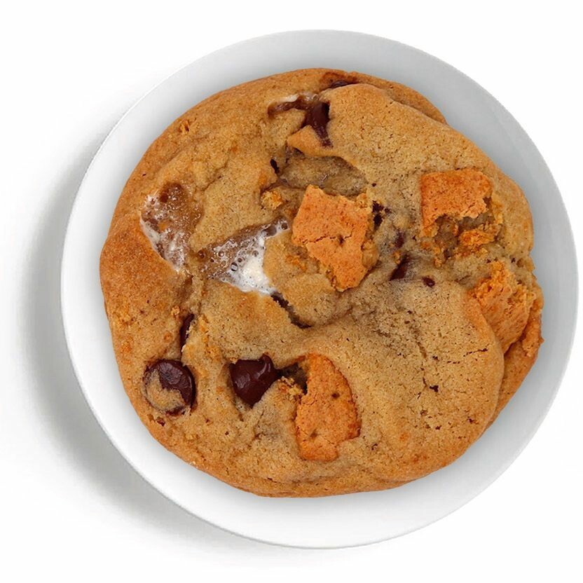 Featuring milk chocolate dough, graham crackers, marshmallows, semisweet chocolate chips, and brownie bites — YUM!